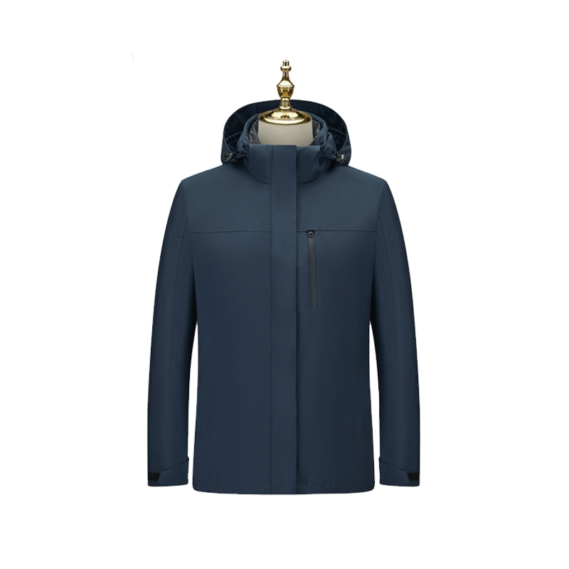Women's navy blue down jacket, made of three proof fabric, can effectively resist oil and water stains, and has a sense of quality. Added with 90% white duck down for good warmth retention. The inner down layer can be detached and is suitable for wearing in various seasons.