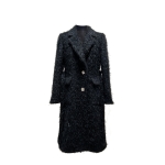 Black long coat with textured long fur fabric, very distinctive; A suit collar with a long waist design that is simple and elegant, making it very fashionable to wear.