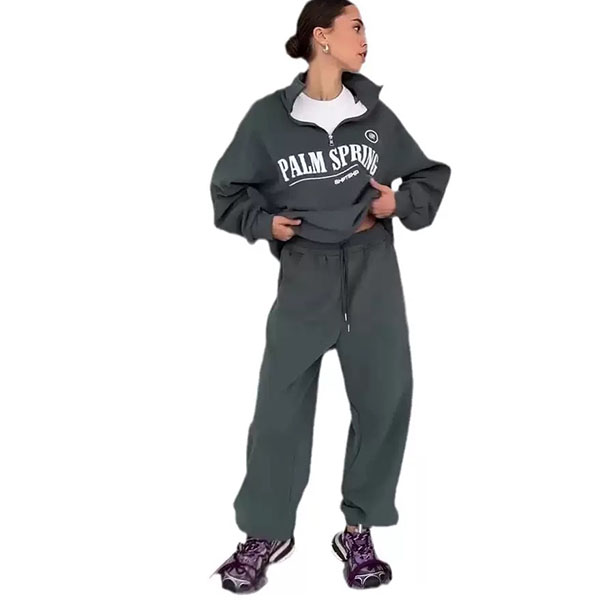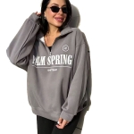 Gray stand-collar sweatshirt with letter print, made of cotton-blend fabric, comfortable and breathable, small stand-up collar, zipper decoration, practical design; large letter print on the chest, ribbed cuffs and hem.